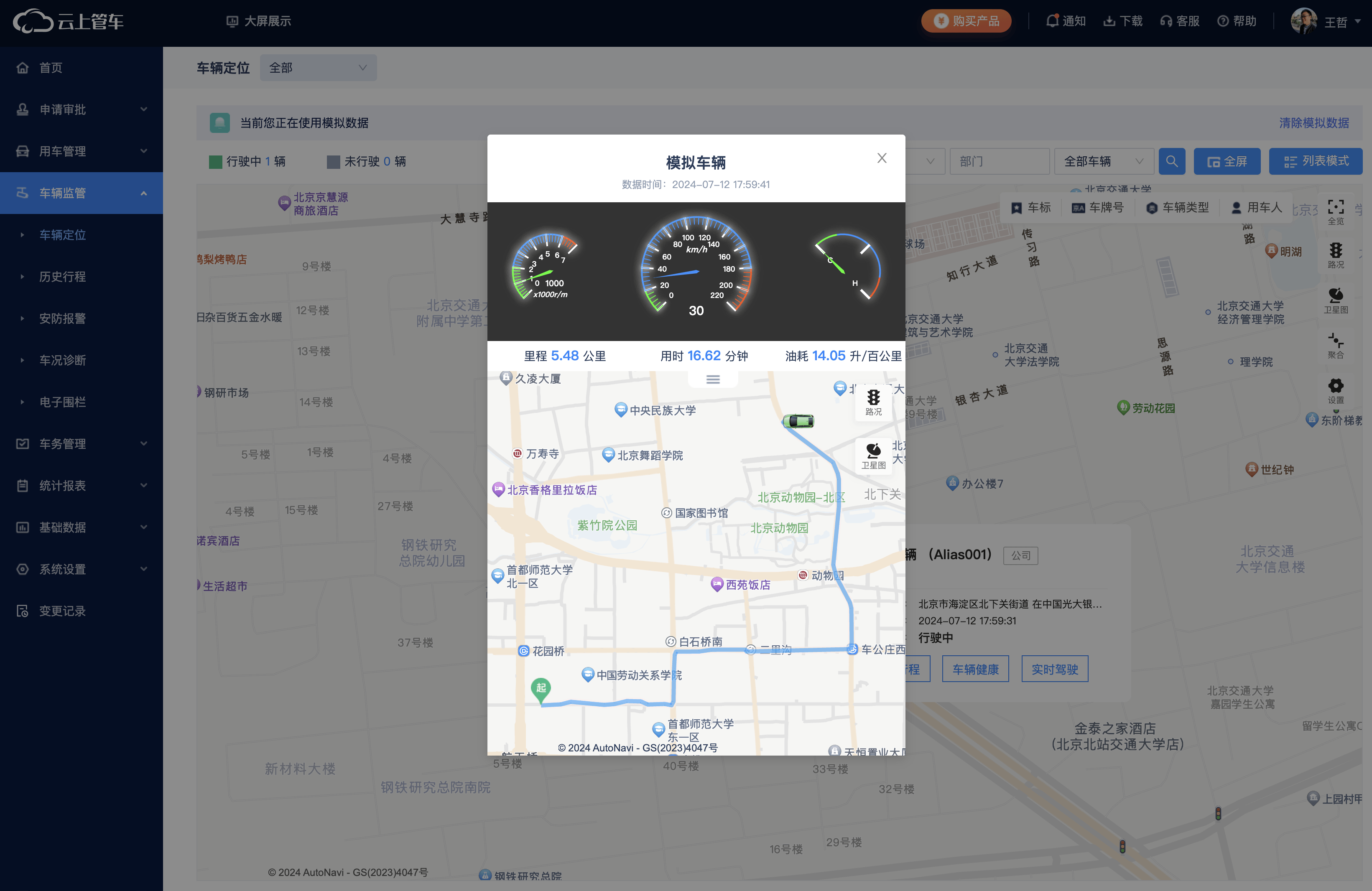 通过云上管车,车辆管理员可以方便快捷的统计记录车辆的各种详细信息,包括车牌号、品牌型号、车身颜色、载客量、购车成本等,让企业对所有车辆都做到了如指掌。此外,得益于软件+硬件的管理模式,通过云上管车,管理员还能够提供车辆的实时位置信息,方便对车辆进行有效的监控和调度。