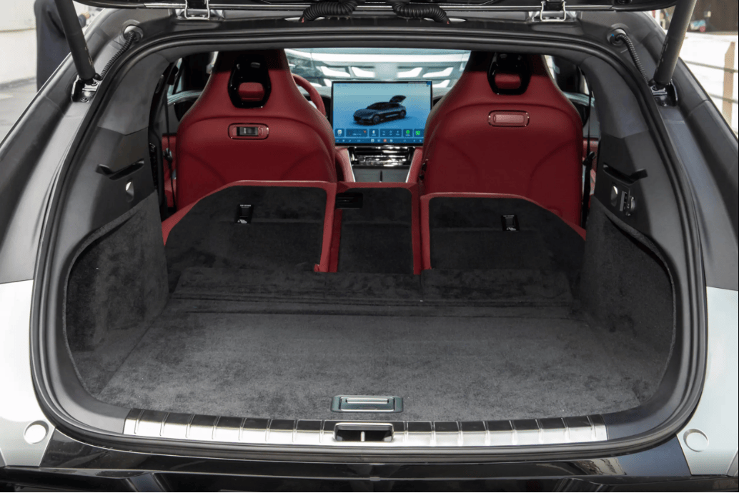 再说说储物和载物空间,腾势Z9GT EV用的是掀背尾门,开口特别大,拿放东西很方便。它前备厢容积有53L,后备厢常规状态下是495L,日常放行李箱、购物袋完全够用。而且后排座椅还支持比例放倒,放倒之后空间还能继续拓展,偶尔拉点大件也没问题。