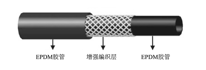 目前应用于汽车的管路材料可以分为三大类,分别是三元乙丙橡胶(EPDM)、热塑性动态硫化橡胶(TPV)和聚酰胺(PA),聚酰胺俗称尼龙。下面以内径15mm为基准,简单介绍三种技术路线。1.1EPDM管路常见方案EPDM管路采用三层结构,内径15mm、壁厚3.5mm,如下图所示。