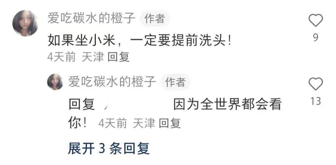因为被人围观,被拍照,博主在评论区分享自己的经历:“如果坐小米,一定要提前洗头。”