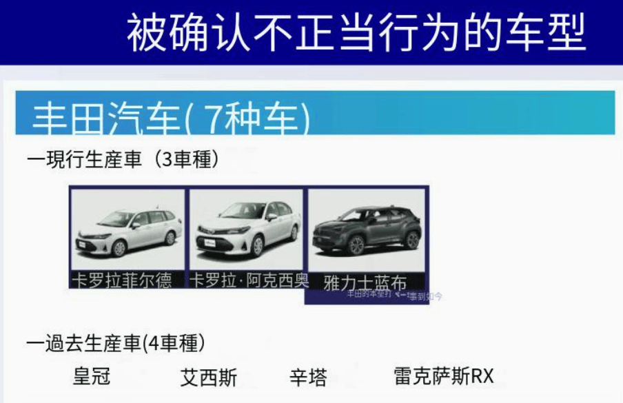 丰田汽车在售的3款车型:卡罗拉Fielder、卡罗拉Axio和雅力士Cross的行人安全测试中提交虚假错误数据。