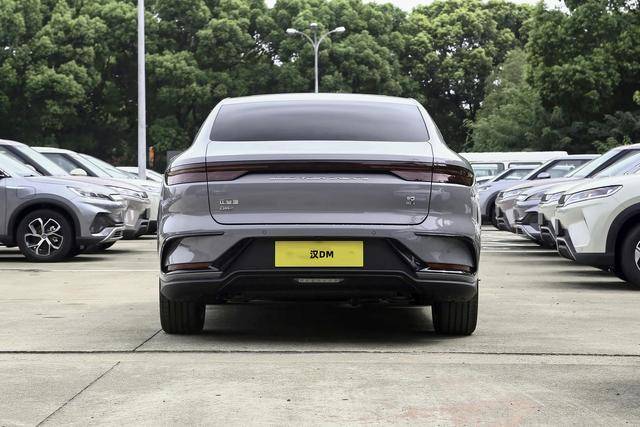 车尾部分,2025款比亚迪汉DM-i尾部继续使用了贯穿式中国结LED尾灯,并且后包围底部还加入了熏黑装饰件+运动套件,以此来增强车尾的活力动感气息。