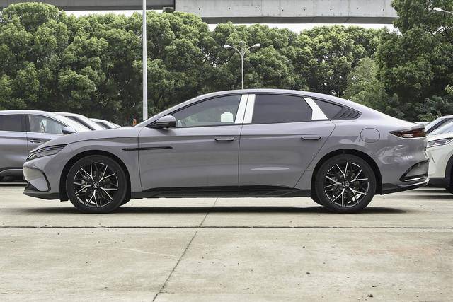 来到车身侧面,2025款比亚迪汉DM-i侧面造型相比老款车型并未明显改动,继续提供前后隐藏式门把手、前排双层隔音玻璃、后排隐私玻璃等设计。另外,2025款比亚迪汉DM-i车身长度增加了20毫米,并且提供4种车漆【银釉白、玄空黑、时光灰、未央灰(新增配色,包含外观黑化运动套件)】。