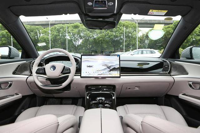 内饰设计部分,2025款比亚迪汉DM-i中控台区域搭载了12.3英寸液晶仪表、15.6英寸自适应旋转中控屏。