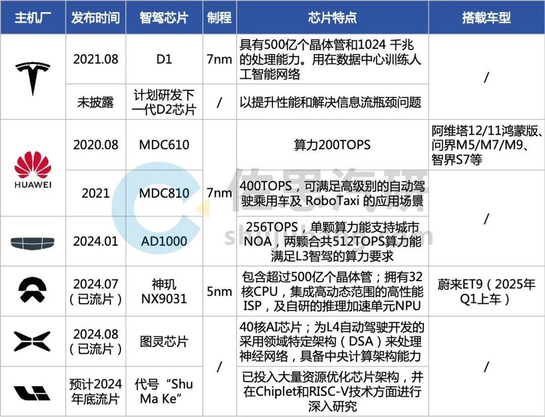 主机厂自研智驾芯片汇总
