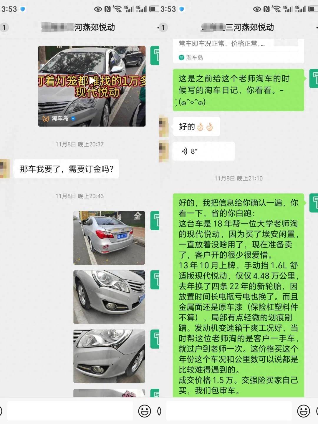 而恰好,远在燕郊的一位客户正在寻觅一辆性价比高的代步车,双方的需求如同拼图的两块,由淘车岛完美地匹配在了一起。