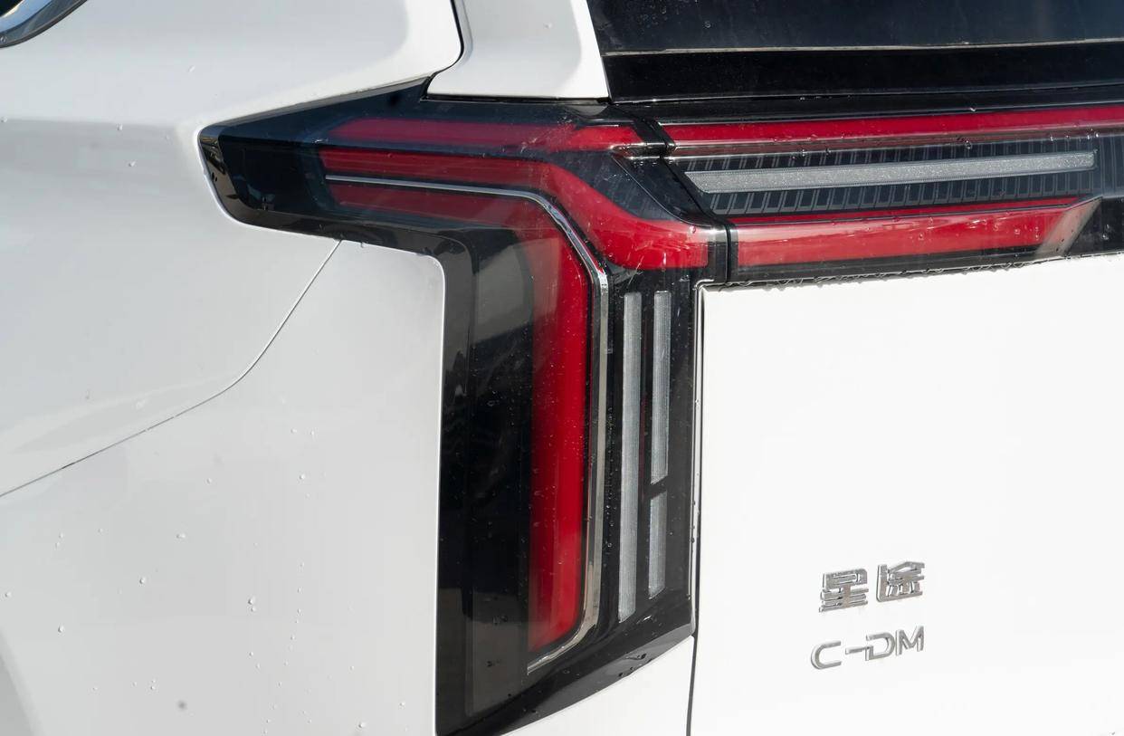车身侧面则更偏向家用风格,平直的车顶线条为第三排乘客带来充裕的头部空间,20英寸多幅式轮毂也增强了也和整车气质比较搭。此外,车窗边缘以及车门下部均用镀铬饰条进行点缀,且装备了行李架,而且采用传统机械门把手,实用性不错。至于车尾部分,星途揽月C-DM相较燃油版有着明显差异,贯穿式的尾灯设计新颖,两侧灯光层次分明,夜间点亮效果极具辨识度,这套尾灯显然和新能源身份更匹配。