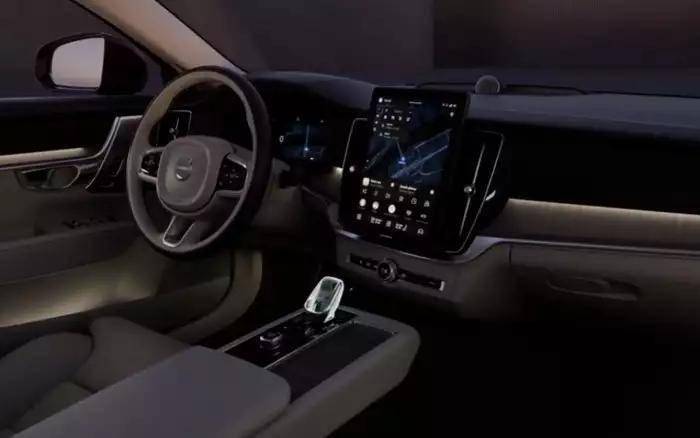 在内饰设计方面,新款S90借鉴了新款XC90的成功经验,采用了相似的座舱布局。中控区域配备了一块11.2英寸的悬浮式大屏幕,与12.3英寸的全液晶仪表盘相得益彰,紧跟当下汽车内饰的潮流趋势。中控屏幕下方依旧保留了实用的实体旋钮和按键,便于驾驶者在行驶过程中进行盲操作。车内还点缀有水晶材质的换挡杆、精致的木纹饰板、带盖板的杯架以及双拼色的真皮多功能方向盘,每一处细节都彰显着北欧的简约与奢华。