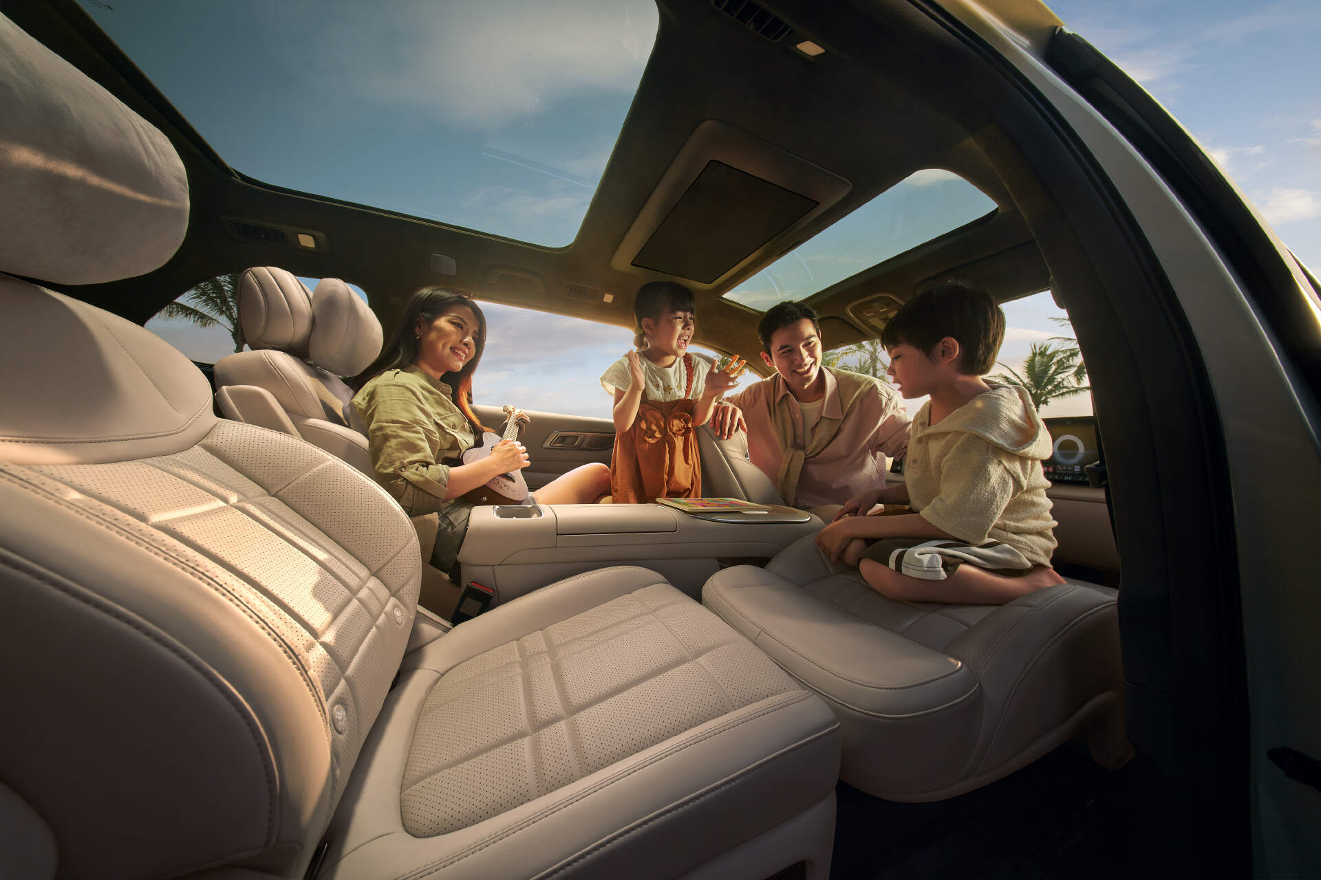 用户实测反馈:"带全家露营时,冰箱能冰西瓜,后排屏能看动画片,第三排老人也能舒展坐,这才是家庭车该有的样子!"