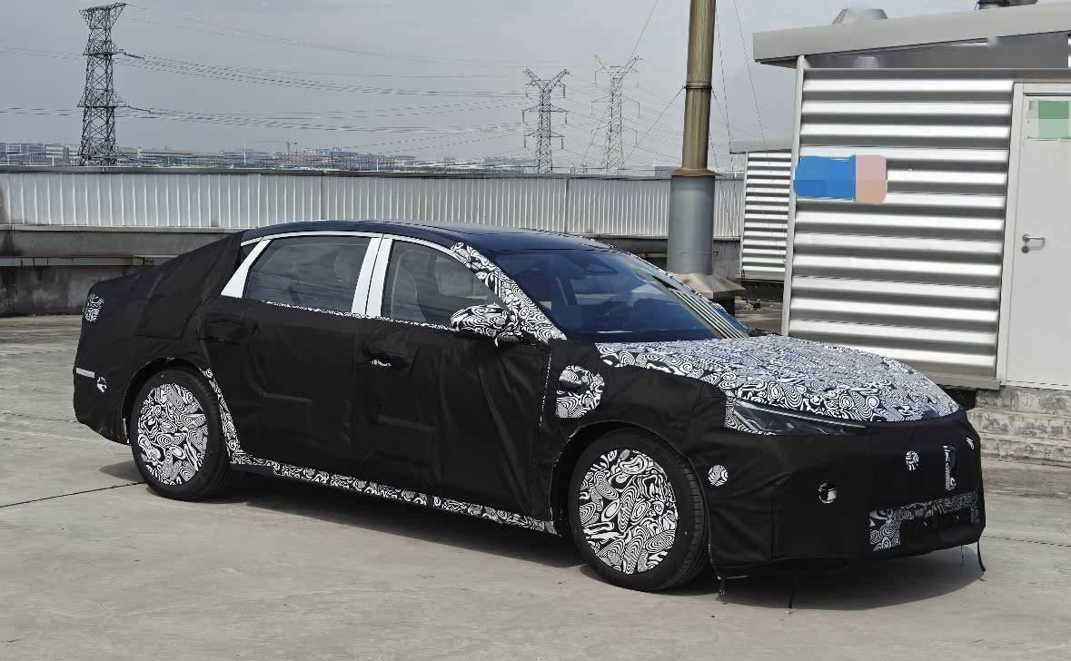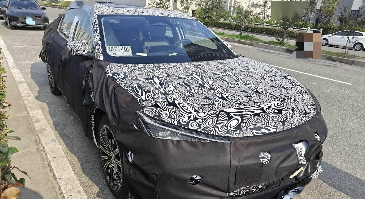 车身侧面,该车保持了主流三厢轿车的经典造型,配以传统的机械式门把手,预示着它主要面向的是家庭用户市场。尽管车辆被伪装得严严实实,但通过后翼子板处的预留开口,不难推测新车将搭载插电式混合动力系统,兼顾燃油与电动两种驱动模式。