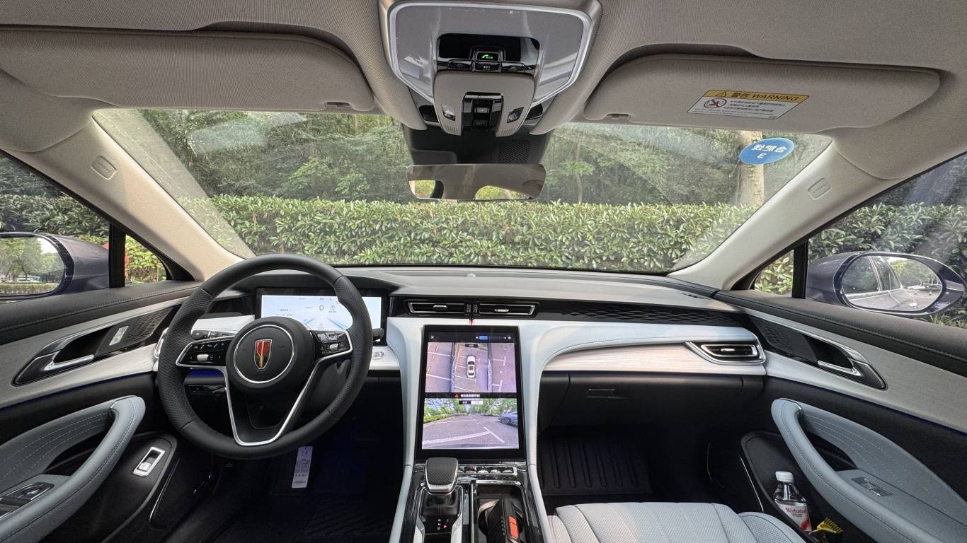 红旗H5 PHEV的内饰设计令人眼前一亮,特别是“石墨黑 + 月白蓝”的专属配色,既彰显了高级质感,又不失清新雅致,与传统豪华车内饰的沉闷风格形成了鲜明对比。车内配备了一块12.6英寸的中控大屏,显示效果清晰细腻,反应灵敏,车机系统操作流畅,各种功能一目了然。方向盘采用真皮材质包裹,握感舒适细腻,多功能按键布局合理,操作便捷。座椅则采用了人体工程学设计,包裹性和支撑性极佳,即便长时间驾驶也能保持舒适。