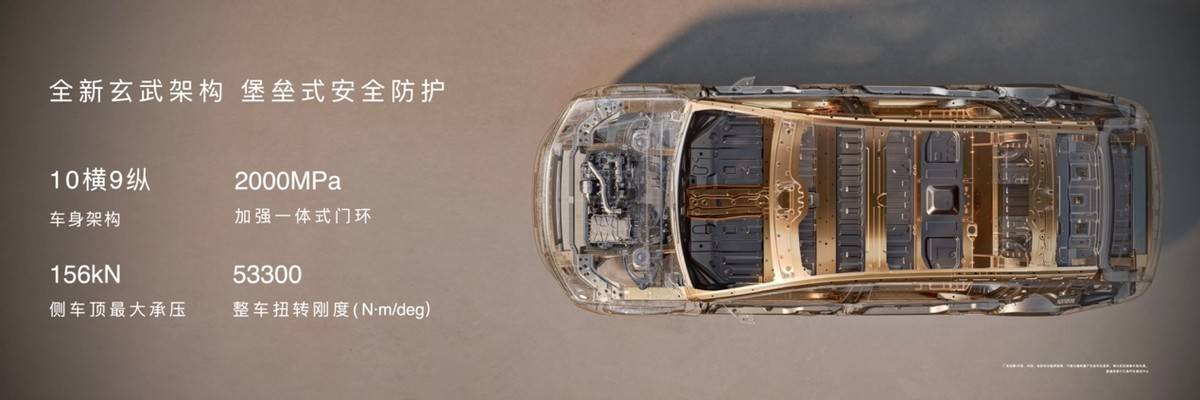 在安全领域,尊界S800设置了全新基准。玄武车身架构以24%的1500MPa+热成型钢占比和92%的超高强钢与铝含量,构筑移动堡垒。10横9纵车身架构中,2000MPa加强一体门环可承受16吨侧向压力,整车扭转刚度高达53300N·m/deg——这些数字背后是安全理念的根本性变革。