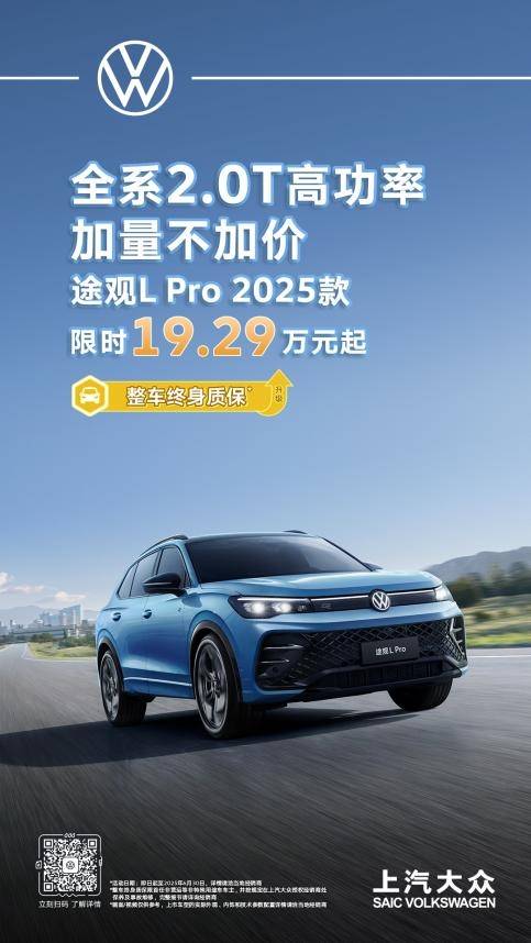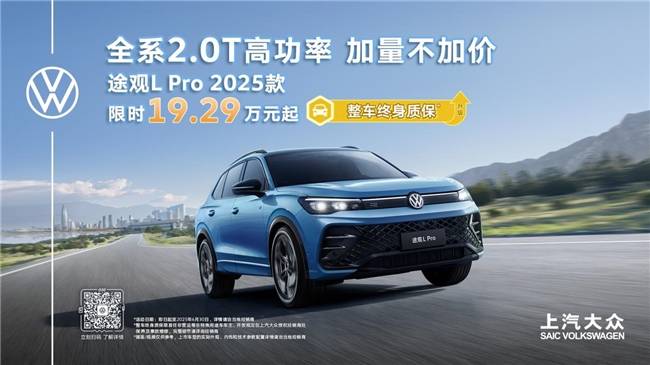 限时19.29万起,上汽大众途观L(Tiguan L)Pro2025可享整车终身质保