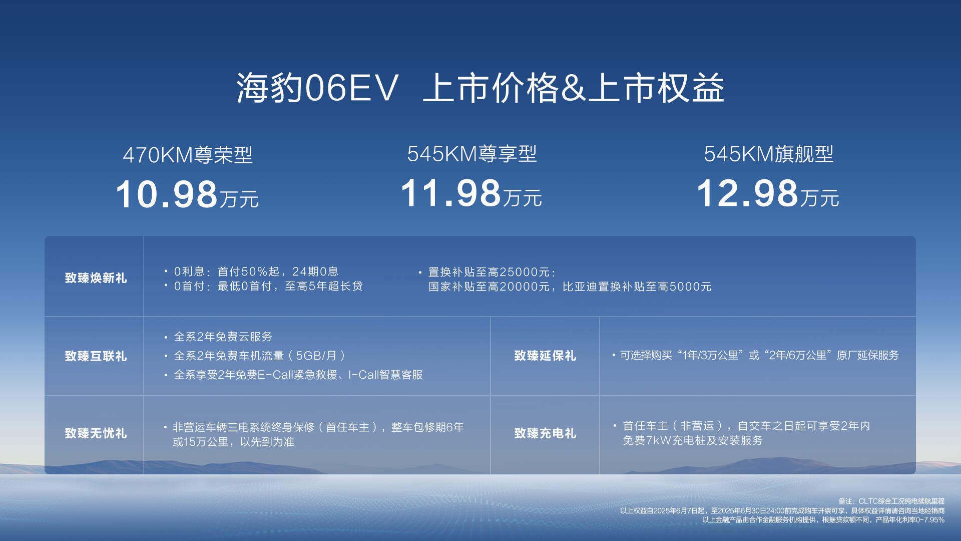 上述权益需在2025年6月30日前完成购车开票,具体详情可通过比亚迪海洋APP或授权门店查询。