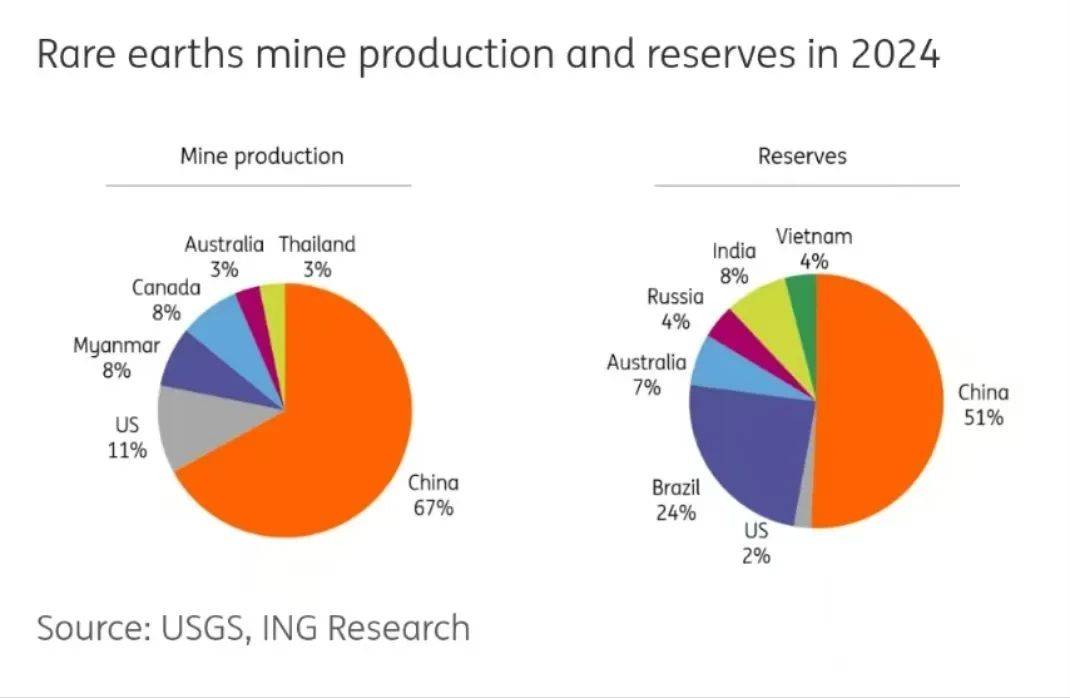 在原材料和提炼技术领域都领先的情况下,整个稀土供应高度集中,就像昔日汽车电池原材料锂短缺一样。