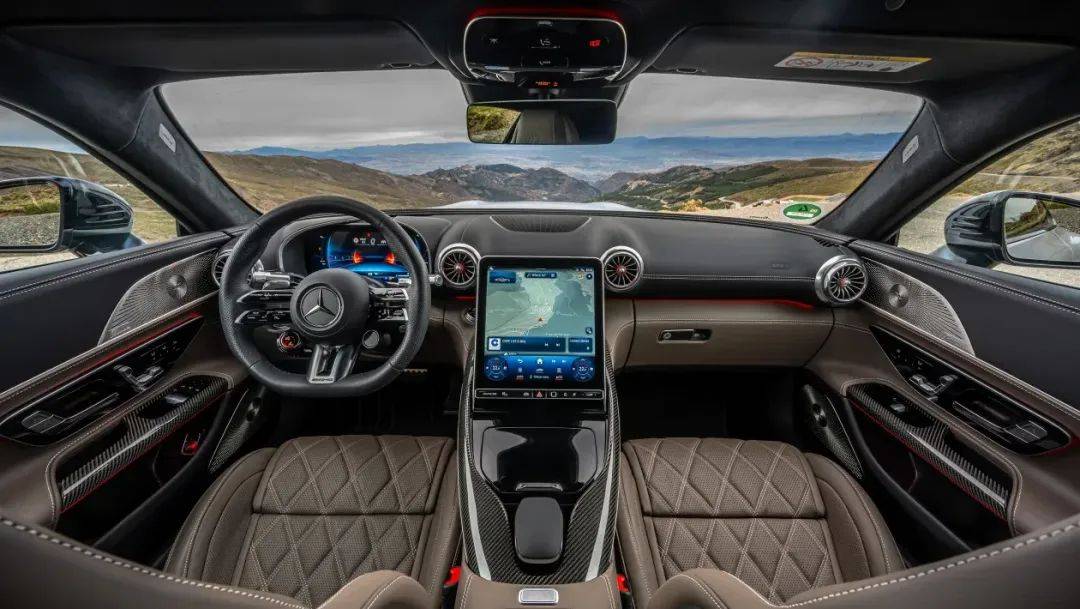 这块屏幕搭载了奔驰MBUX系统,功能丰富但视觉上略显繁杂,包括空调控制在内的大部分主要功能都集成其中。与SL一样,新款GT若能采用更经典的控制布局设计,质感将大幅提升。