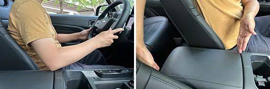 前排中央扶手采用上掀式开启方式,面积宽大,采用软质材料包裹,触感舒适。并且驾驶者在标准姿势驾驶时,可以为肘部提供支撑。