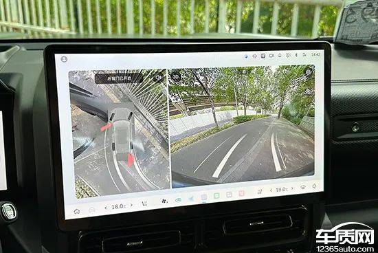 评测车配备了360度全景影像以及透明底盘/540度影像,实测整体画质清晰且畸变情况合理。同时,画面支持多个角度查看,并配有可随动转向的倒车辅助线,能够减轻泊车时的压力。