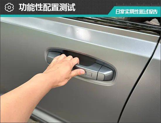评测车配备前排无钥匙进入功能,用户只需携带钥匙将手伸入门把手内便可完成解锁,锁车只需触碰门把手上感应区域就能完成锁车动作。上述操作在实测过程中并未出现失灵或是卡顿情况,实用性表现令人满意。