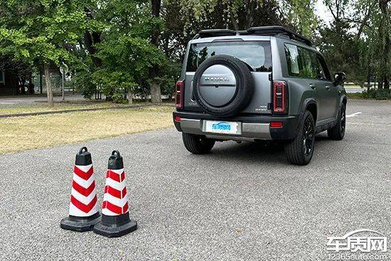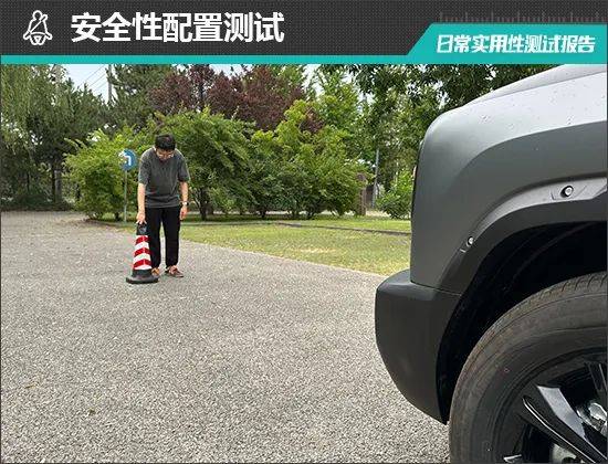 在测试前方视野测试中,我们采用高70cm的桩桶作为参照物,随后调整车距,直至在主驾驶位可以看到桩桶上沿。经过测试,桩桶与车头最终测得的数据为3.805m,在测试过的同级别车型中处于中下游水平,前方视野盲偏大。
