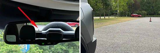 后方视野测试中,依旧将桩桶固定摆放,随后移动车辆直至可以观察到桩桶上沿为止。实测评测车后方视野所测得的距离为13.633m,与测试过的同级车型相比处于中上游水平。