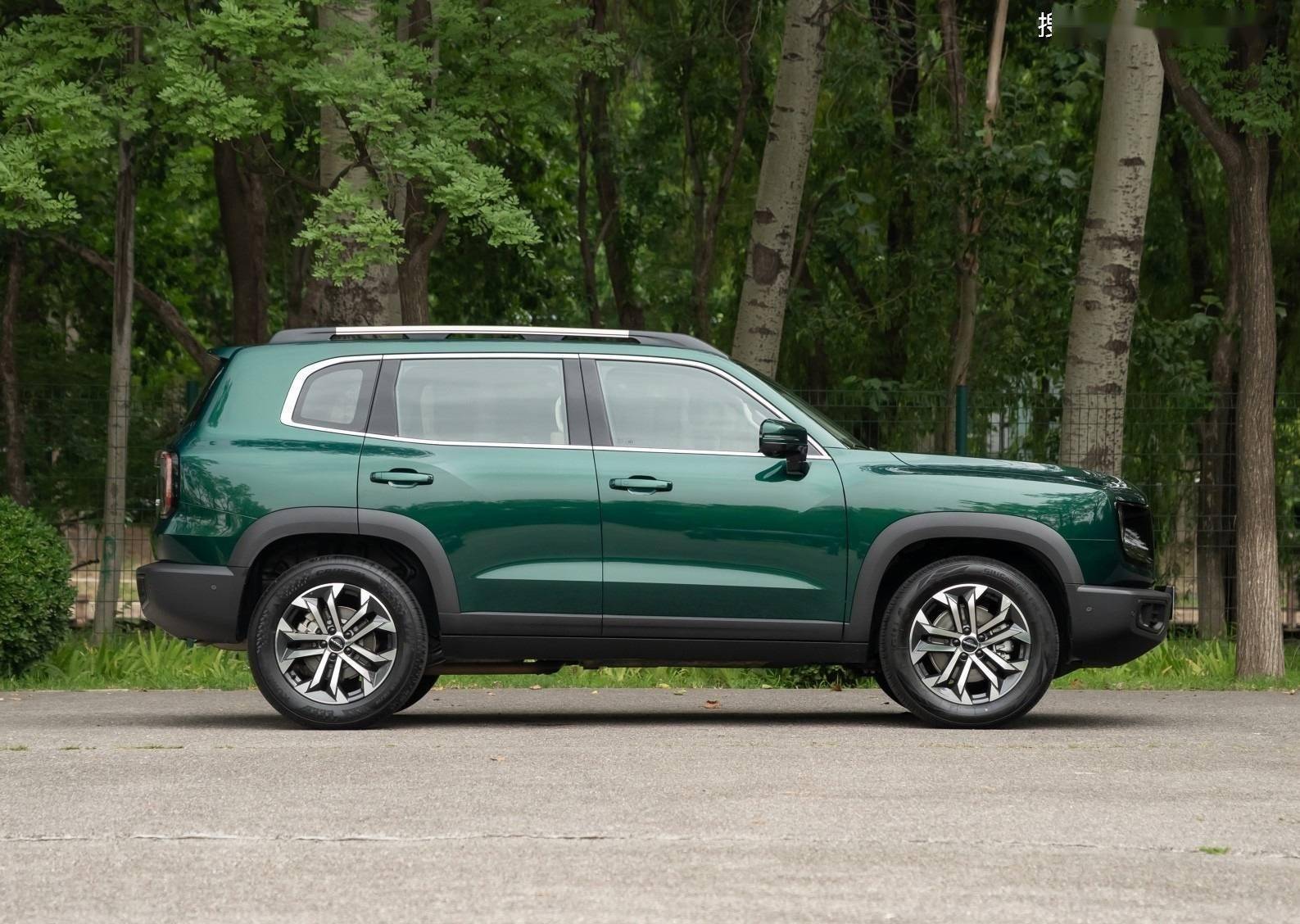 再来看新车的车身侧面部分,车身尺寸维持4620×1890×1780mm车身尺寸与2738mm轴距,方盒子造型搭配分段式腰线,车顶行李架与200mm离地间隙延续硬派基因。而且整体方正的外观设计以及突出的熏黑轮眉,与2025款车型保持一致,细节方面有着升级,新车新增苔岩绿/陨石灰车漆,轮毂提供18/19英寸熏黑样式,侧面保留传统门把手及38处户外储物设计,整体还是很实用的。