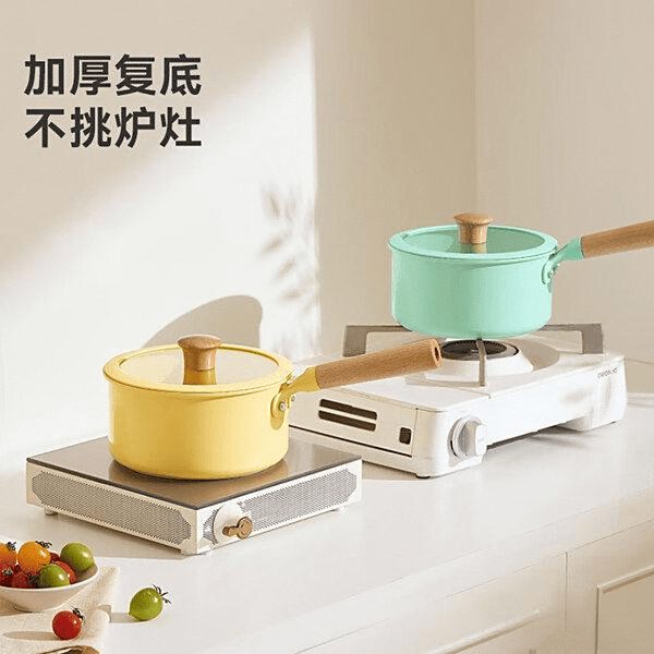 这款奶锅的不粘性能经过300°C高温烧制,表面光滑,做饭轻松,清洗也方便。即使长时间使用,锅面也不容易变色,耐磨性比普通陶瓷强很多。