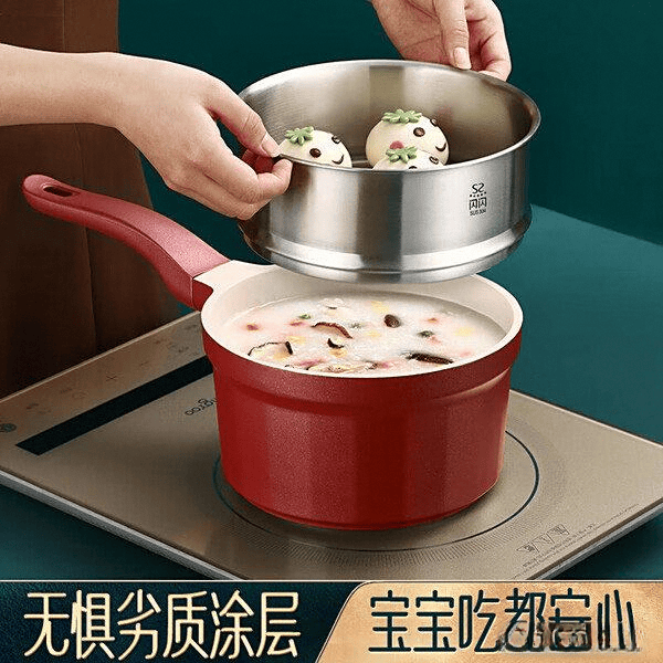 设计方面也很贴心,适用于明火和电磁炉,锅身无铆钉设计,不留卫生死角,清洁起来更方便。容量适中,煮奶、煮粥、做辅食都很合适,还能搭配蒸格使用,使用体验非常舒适。