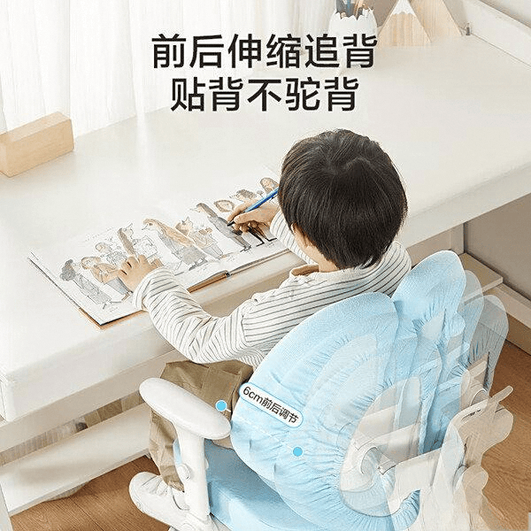 动态追背设计:这款学习椅采用了9cm动态追背技术,可以随孩子的坐姿调整椅背,无论是写字、看书还是画画,都能提供最佳的支撑力度,避免因坐姿不良导致的身体不适。