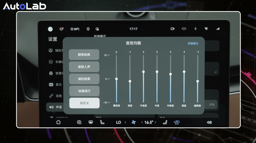 此外,我们之前见过的AI智慧声场在尚界H5这里是没有的,只能手动调节声场中心位置。