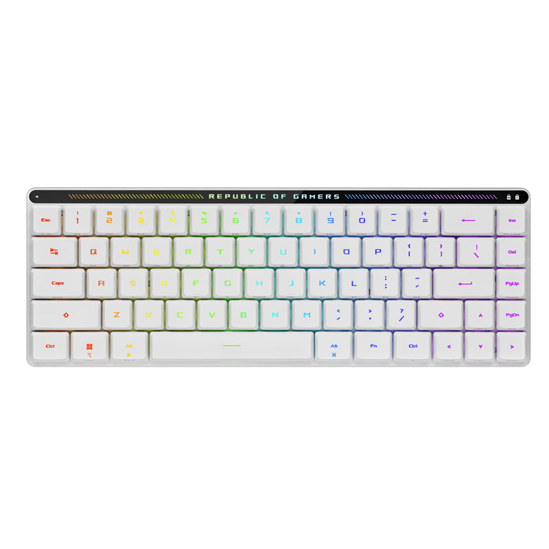 除了卓越的性能,ROG魔导士RX LP的设计同样令人赞叹。它的65%紧凑布局,不仅节省桌面空间,还使得整个键盘看起来更加优雅。无论是在办公室还是游戏房间,它都能成为一处亮丽的风景。白色的外观设计,搭配炫酷的RGB灯效,完美融入各种环境,展现你的个性与品位。