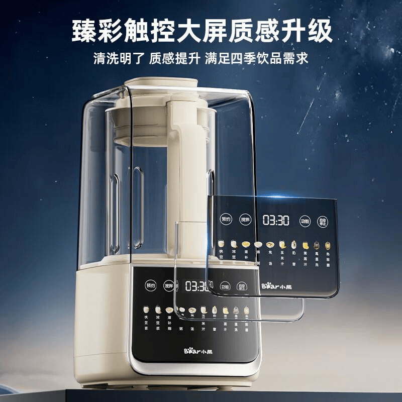 它的容量为1.5L,适合三四口之家使用,触控大屏操作简单,米糊、豆浆、果汁都能轻松制作,还有12小时预约功能,方便快捷。