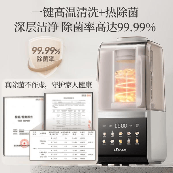 它的刀头采用10叶立体钢刀,足够锋利,不管是打豆浆还是做果汁,都能将食材打得非常细腻,不用过滤,直接喝,口感也很好。还有高温自清洁功能,使用后无需自己清洗,省时省力,懒人福音!