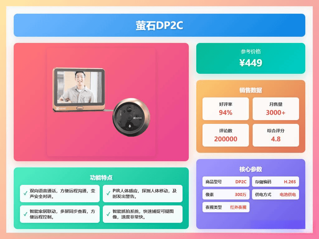 作为一款智能猫眼,萤石DP2C在安全性和实用性上都表现出色: