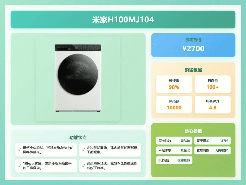 如果你追求性价比,又想满足日常家用需求,米家H100MJ105绝对是个不错的选择。10公斤的大容量,基本上可以一次性搞定一家人的衣物,省时省力。而且它采用了低温热泵烘干技术,不用担心高温损伤衣物,特别是羊毛、丝绸等娇贵面料也能放心烘干。此外,它的智能防缠绕功能让衣物烘干后褶皱少,省去了熨烫的麻烦,简直是懒人福音。价格方面也比较亲民,对于预算有限的朋友来说,是个不错的选择。