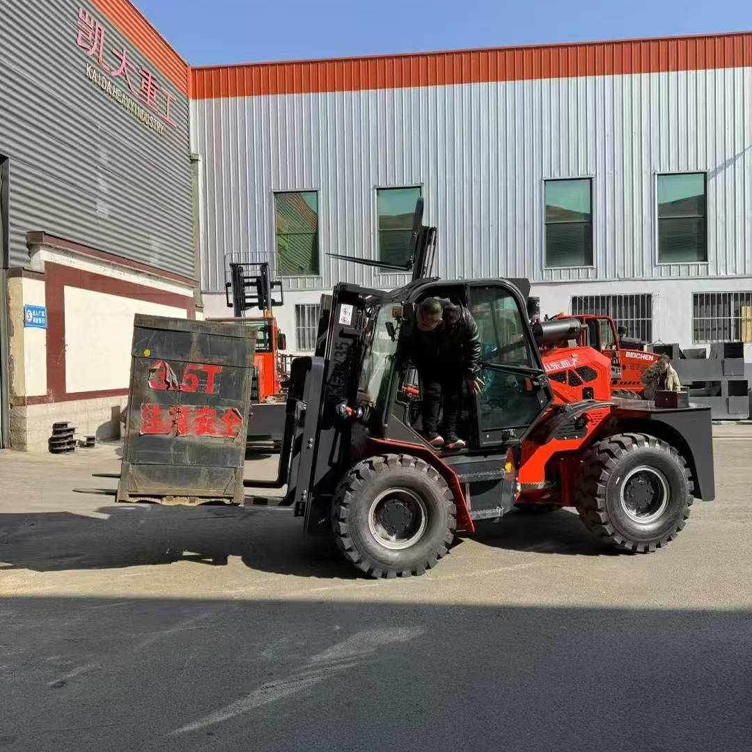 凯大一体式越野叉车搭载全时四驱驱动系统,动力冗余度充足,可在泥泞、田间等不平地面保持稳定行驶,最大爬坡能力达35度。针对农业场景优化的离地间隙,有效避免作业时底盘剐蹭,通过性表现优异。