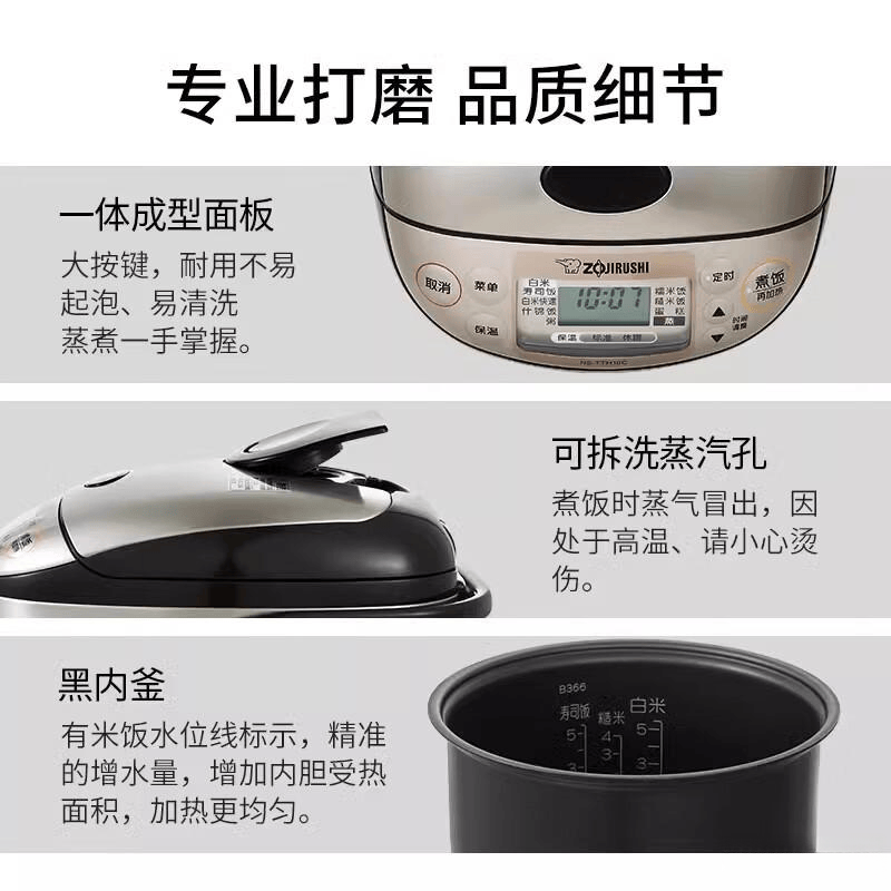 象印电饭煲以“高端品质”著称,采用远红外加热技术,确保米饭内部熟透,口感更香甜。许多用户表示:“象印的电饭煲,煮出来的饭像饭店做的一样,贵是有道理的。”