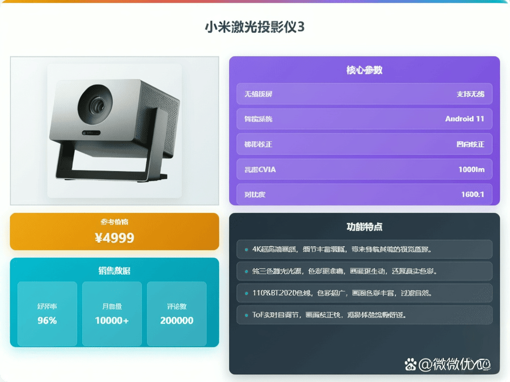 特点:4K超高清显示、三色激光光源、支持多场景智能调节