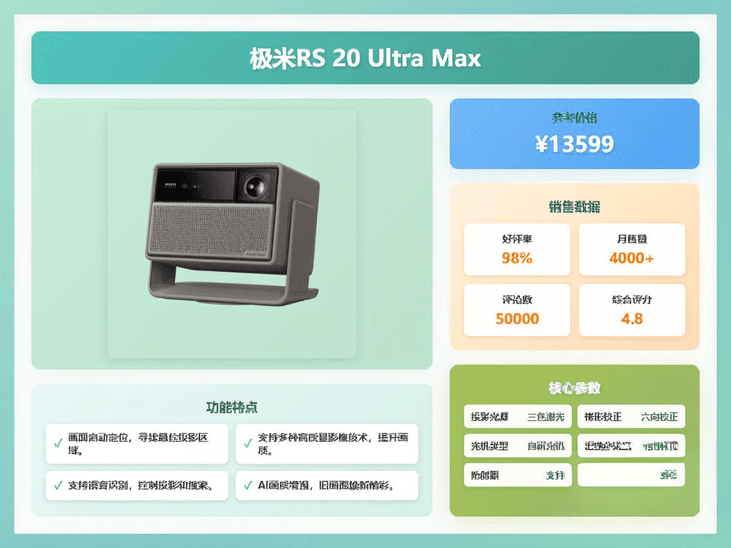 推荐理由:极米RS 20 Ultra Max采用4K超高清分辨率,画面细腻,色彩还原真实,每次观影都像走进影院一样。三色激光光源使得颜色饱满丰富,画面更亮丽,无论是看电影还是玩游戏都特别过瘾。
