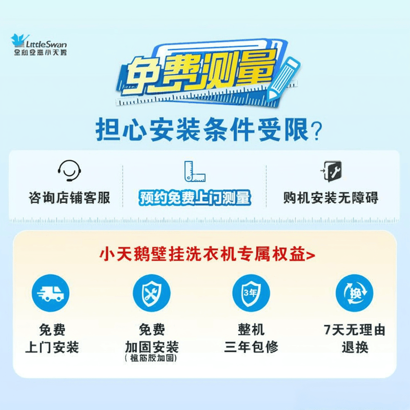 小天鹅的壁挂洗衣机采用航天级防跌落支架,经过我三年的使用,螺丝依然稳固。即使家里有小孩在乱蹦跶,也不必担心机器会掉下来,安全性比普通壁挂洗衣机高出两档。