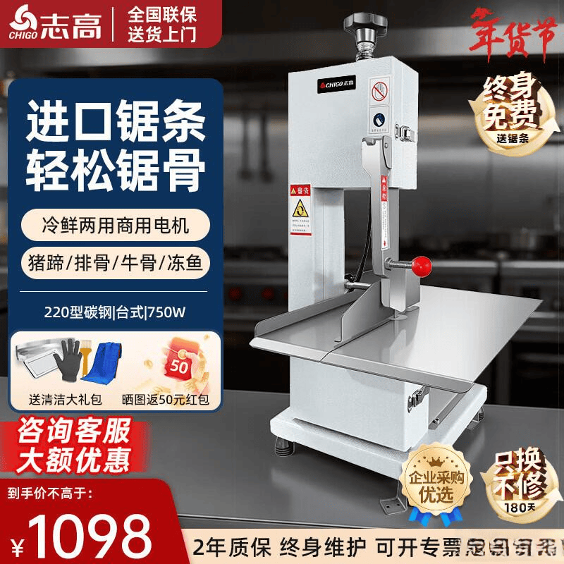 品牌介绍:志高大家熟悉的是家电,其实它的小型商用设备也做得有模有样。锯骨机做工规整,接缝严密,整体质感远超同价位产品。