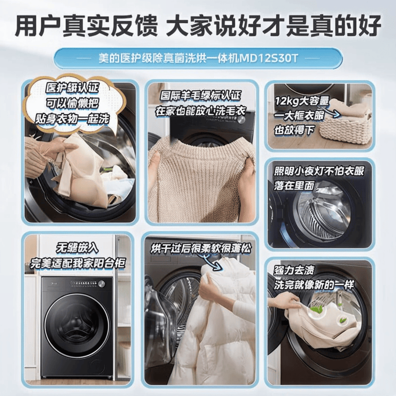 1. 美的元气2.0洗烘一体机:12KG大容量+智能投放,全家衣物一次搞定