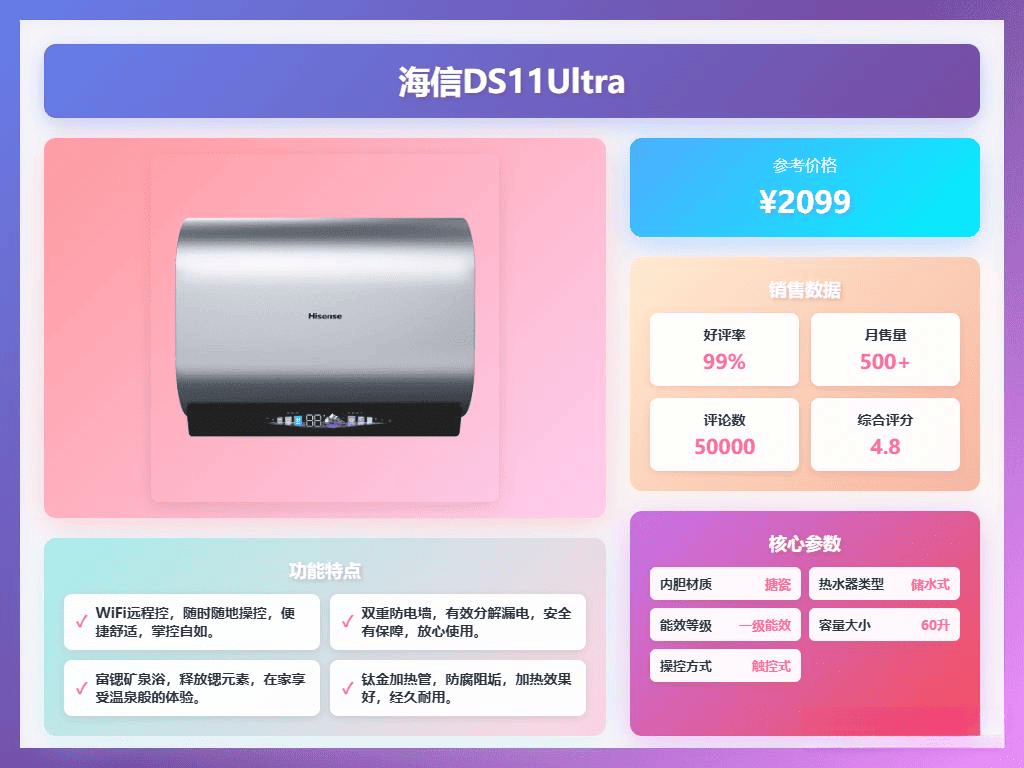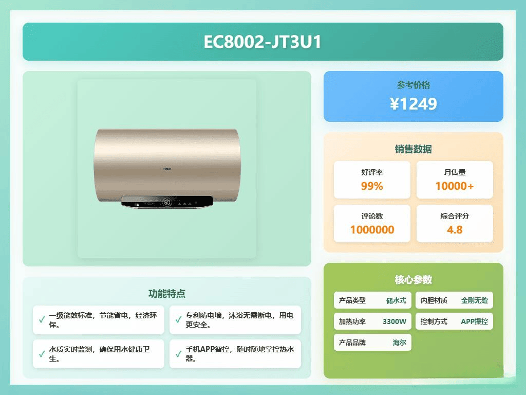 当然,选购热水器不仅仅要关注是否免换镁棒,安全性、加热速度、容量等因素同样重要。我们都希望能买到一款既能快速出热水,又能保证用水安全的热水器。经过一番调研,我为大家挑选了以下8款热水器,感兴趣的朋友可以继续了解。