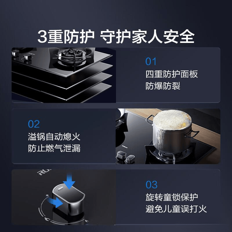 - 安全防护,让烹饪更安心:熄火保护、童锁保护等多重安全设计,让你在享受烹饪乐趣的同时,不必担心燃气泄漏等安全隐患。
