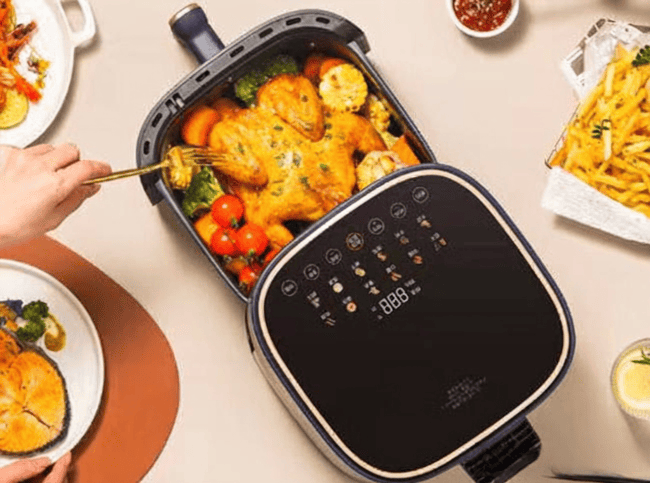 - 3️⃣ 智能触控面板:操作起来也挺简单,触控面板一按就行,温度和时间都能自己调。而且它还自带6个预设菜单,像炸薯条、烤鸡翅这些,直接选对应的菜单就行,不用自己瞎摸索,确实省心。