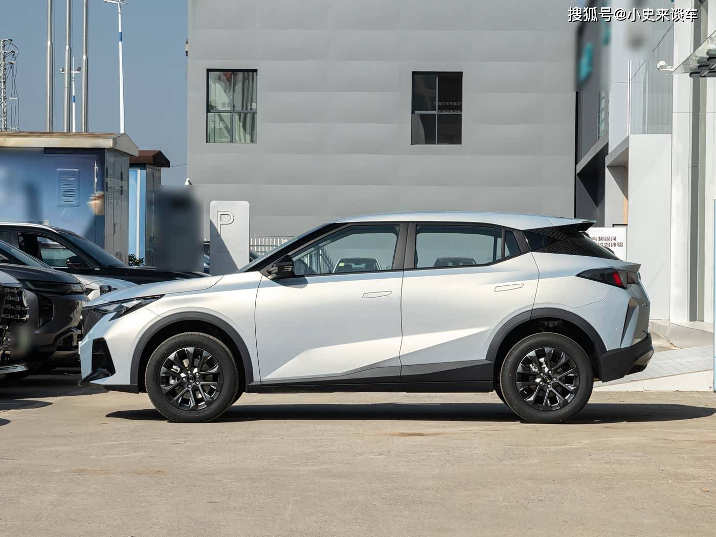 再来看车身侧面部分,车身侧面采用悬浮式车顶设计,A柱、B柱、C柱均进行了熏黑处理,搭配18英寸熏黑五辐式轮辋,营造出强烈的运动氛围。间断式平行双腰线设计提升了整车的运动姿态,隐藏式门把手不仅美观,还能有效降低风阻。车身尺寸为4410×1850×1600mm,轴距达到2650mm,在小型SUV中属于较为宽敞的水平。新增的侧裙镀铬装饰条进一步提升了车身侧面的精致感。