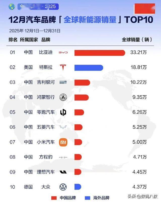 碾压特斯拉!2025全球销榜出炉:中国品牌屠榜,小米成最大黑马