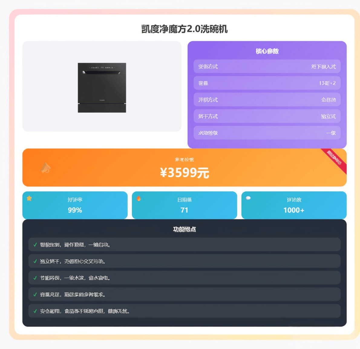 因此,净魔方2.0的定位就是“全能实用派”。如果你追求的是全面的洗碗体验,希望一台机器能可靠地解决日常所有碗盘的清洗和烘干,并且预算在三千元档,那么它无疑是一个高性价比的稳健选择。