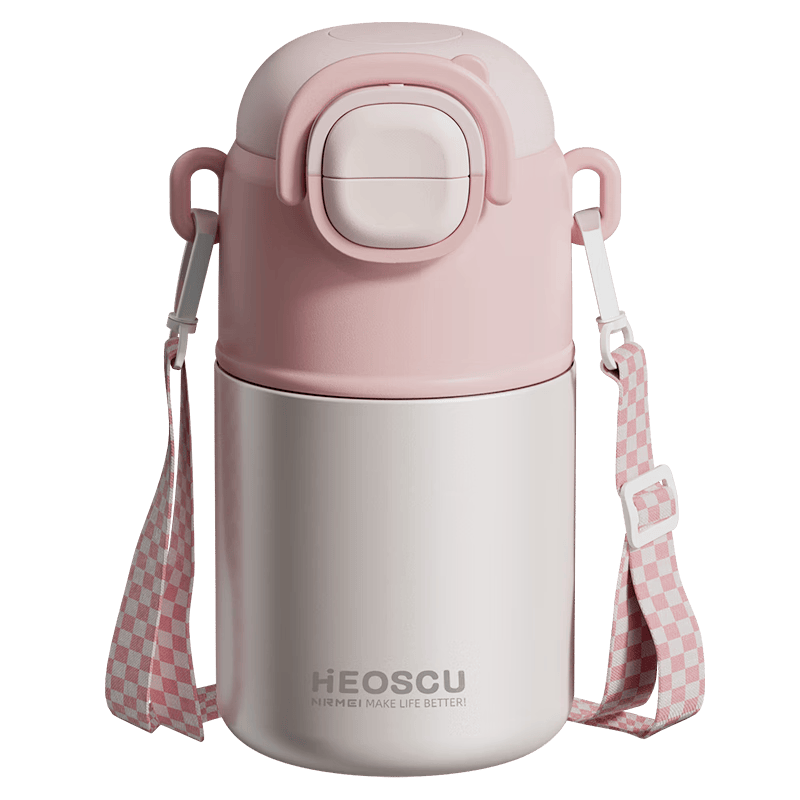 在设计上,恩尔美儿童保温杯不仅注重功能性,更注重时尚感。可调节肩带设计,使得这款杯子更便于携带,孩子们可以轻松地将它挂在书包上,时刻保持饮水的便捷与时尚,成为校园中的小明星。