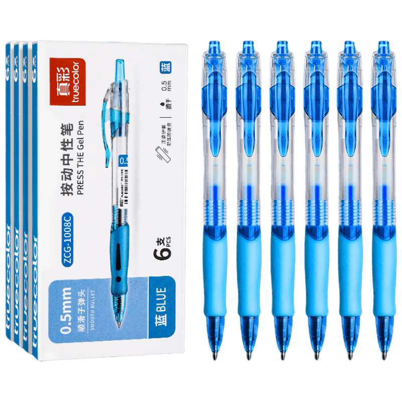 在产品设计上,真彩中性笔体现了人本理念。它的按动设计方便快捷,让你在需要时随时取出使用,节省了不少时间。同时,笔身采用环保可回收材料,符合现代人的环保意识,使用它不仅是对自己书写体验的提升,更是对环境保护的支持。